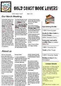 March Newsletter Now Out Posted on March 24, 2011 by goldcoastbooklovers https://goldcoastbooklovers.com/wp-content/uploads/2011/03/1103gcblnews.pdf Share this:Tweet Click to email a link to a friend (Opens in new window) Email Like Loading... Related