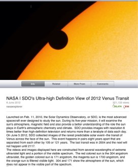 Nasa hi def video of the Transit of Venus Posted on June 7, 2012 by goldcoastbooklovers Click on the pic Share this:Tweet Click to email a link to a friend (Opens in new window) Email Like Loading... Related