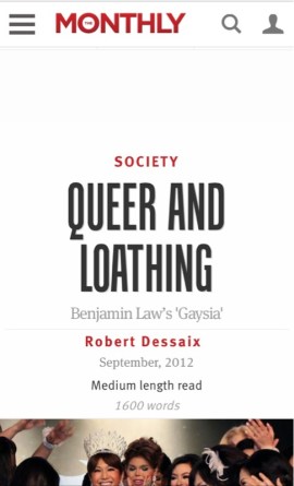 Dessaix on Benjamin Law’s Gaysia Posted on December 24, 2013 by goldcoastbooklovers There is no one like Robert Dessaix Via The Monthly Share this:Tweet Click to email a link to a friend (Opens in new window) Email Like Loading... Related
