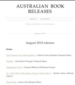 New Australian Book Releases Website Share this:Tweet Click to email a link to a friend (Opens in new window) Email Like Loading... Related