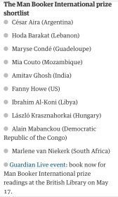 2015 Man Booker Prize Shortlist Announced Posted on March 25, 2015 by goldcoastbooklovers Via The Guardian Share this:Tweet Click to email a link to a friend (Opens in new window) Email Like Loading... Related
