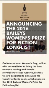 2016 Baileys Women’s Prize for Fiction Longlist Announced Posted on March 9, 2016 by goldcoastbooklovers Via Twitter Share this:Tweet Click to email a link to a friend (Opens in new window) Email Like Loading... Related